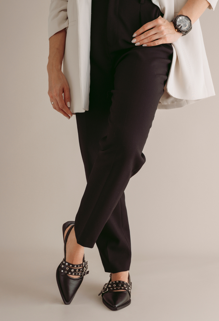 Estas baletas en punta con taches combinan elegancia y un toque audaz para complementar cualquier atuendo sofisticado. Su diseño detallado aporta un estilo moderno sin sacrificar la comodidad, ideal para quienes buscan destacar con sutileza en cualquier ocasión.