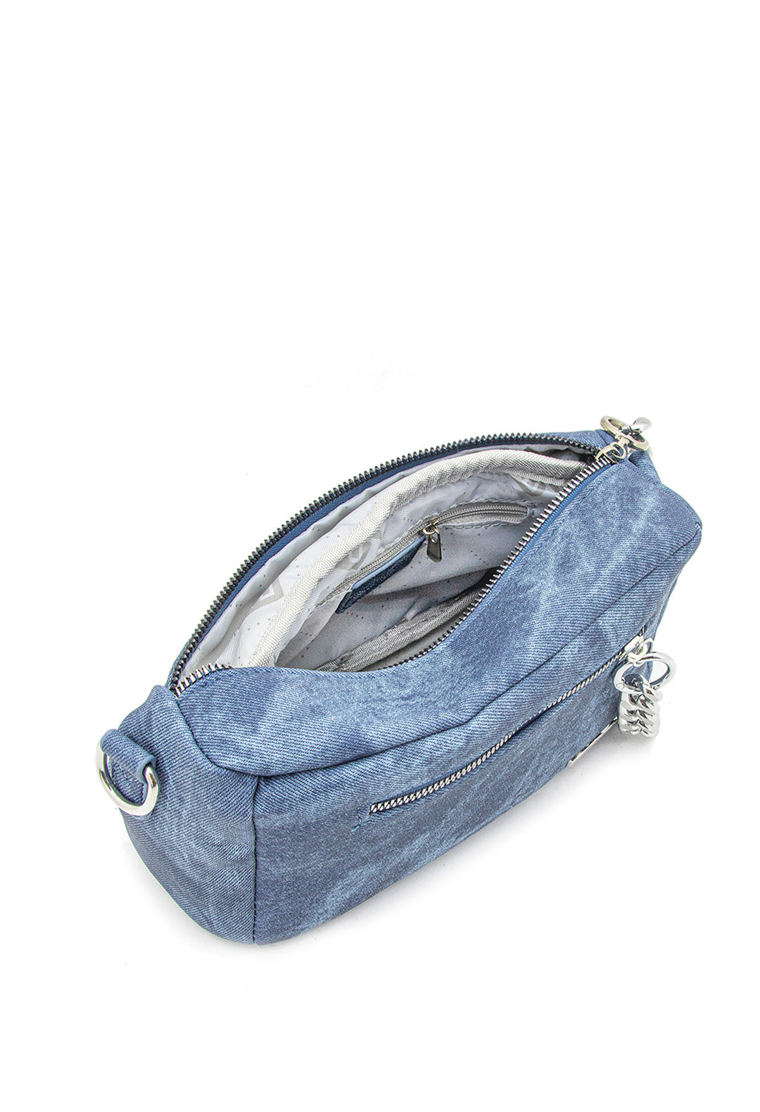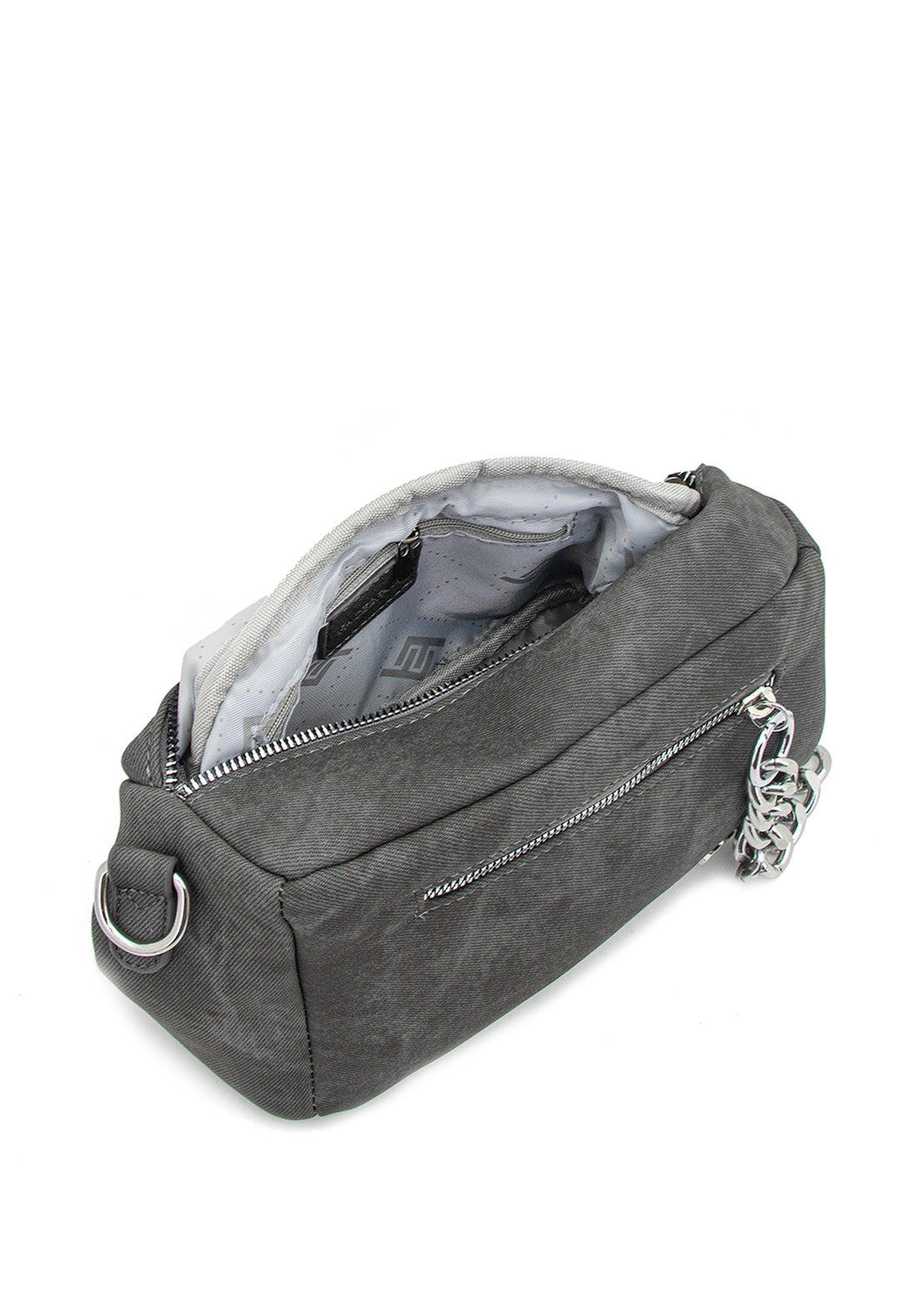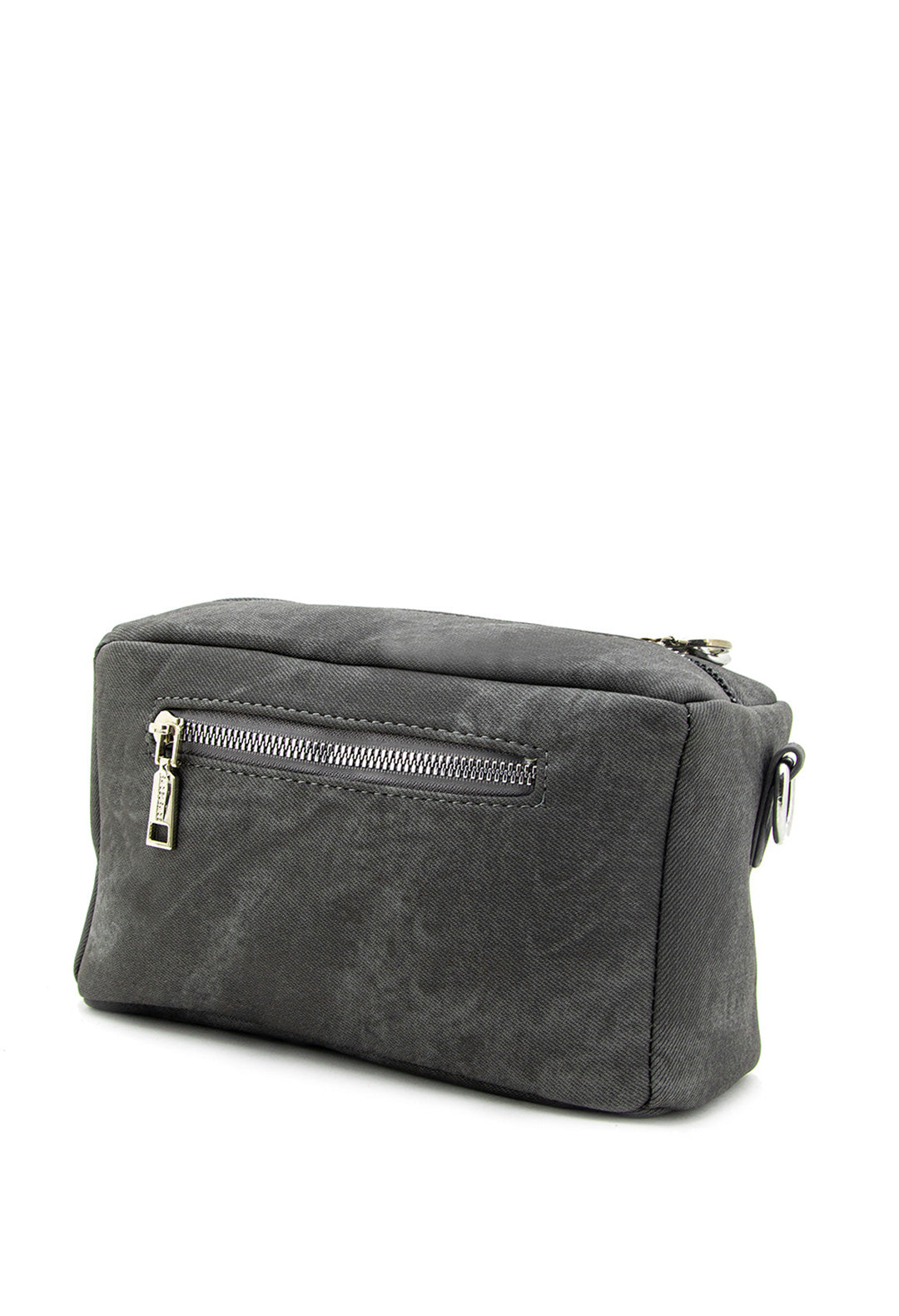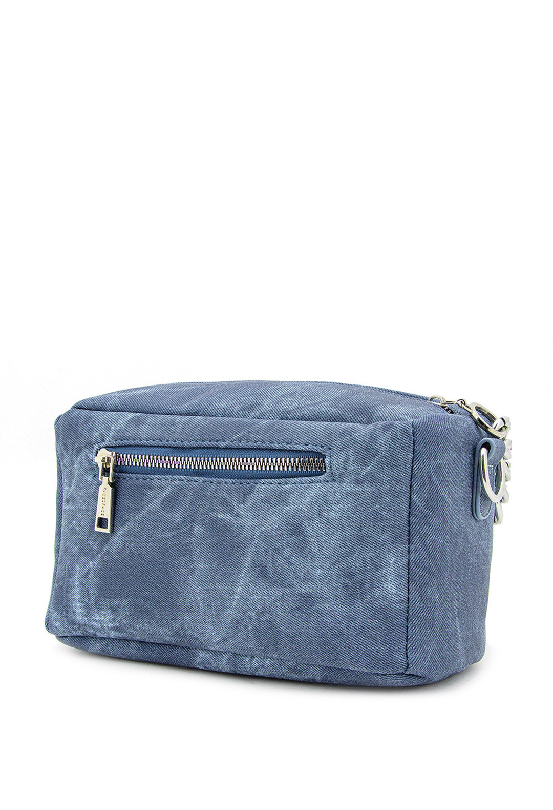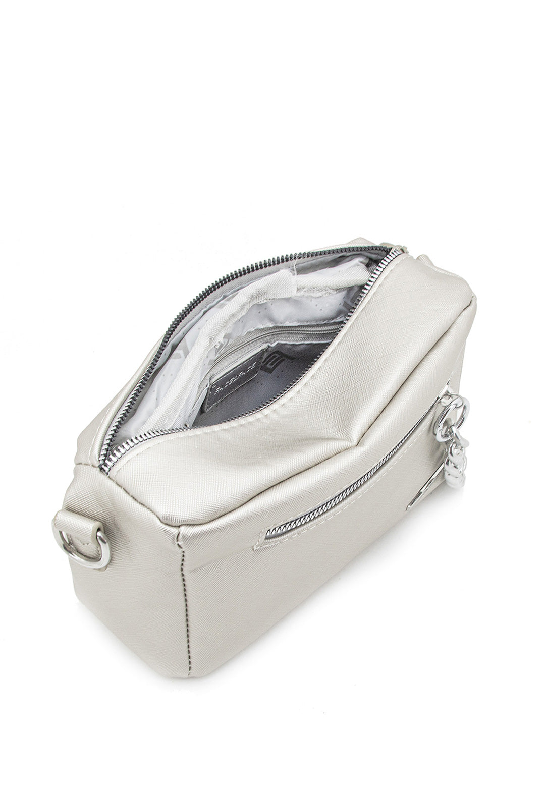 Bandolera rectangular con bolsillo delantero y cadena decorativa, bolsillo trasero con cierre y cargadera en sintético con cadena