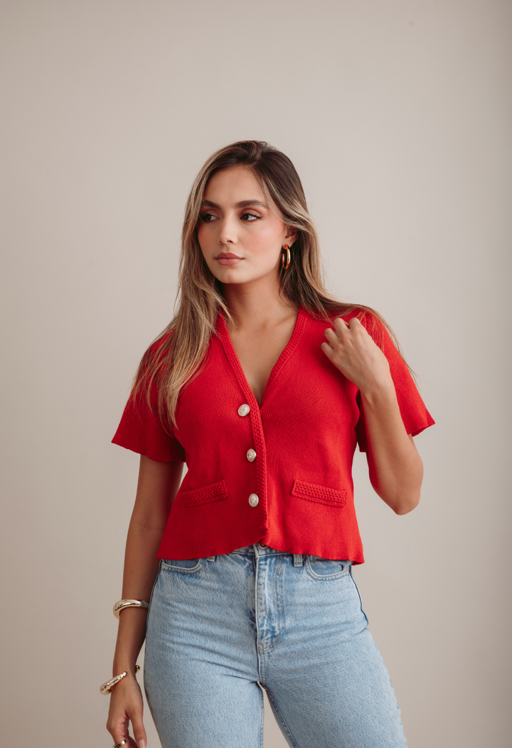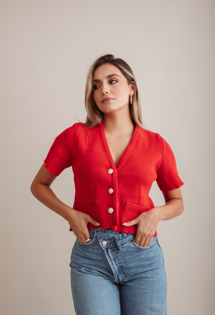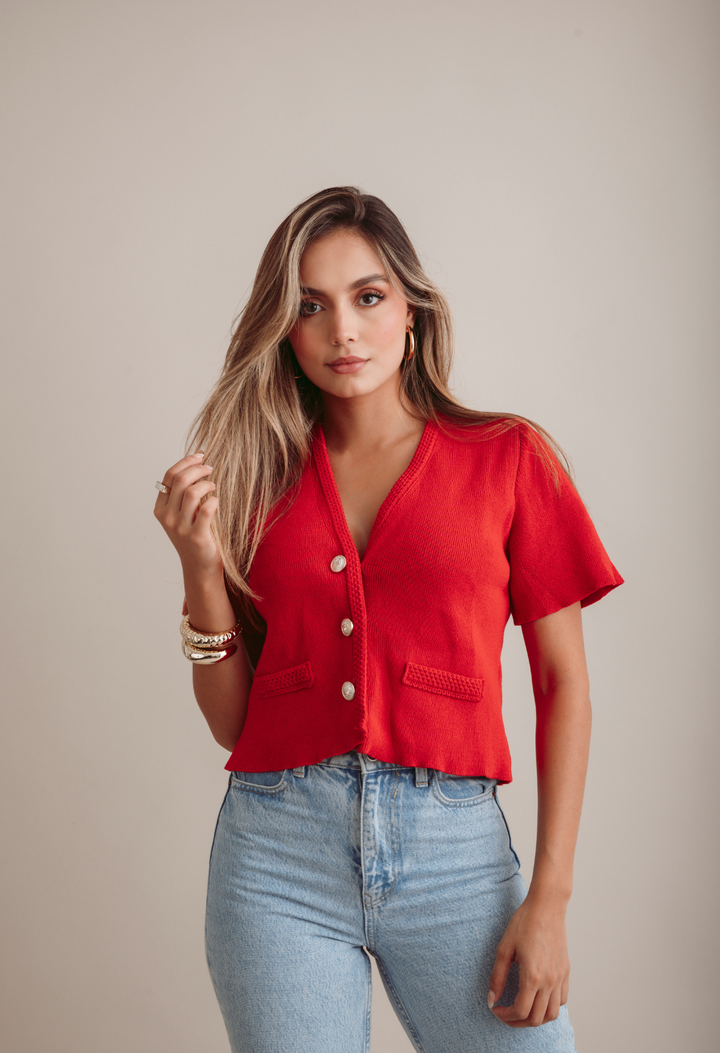 Blusa elegante confeccionada con detalles de botones dorados que añaden un toque de lujo y distinción a tu guardarropa. Su diseño sofisticado la convierte en la opción perfecta para ocasiones especiales o para elevar tu look cotidiano. Los botones dorados crean un contraste visual cautivador que refleja tu estilo refinado. Versátil y versátil, combina fácilmente con tus prendas favoritas para crear conjuntos impactantes.