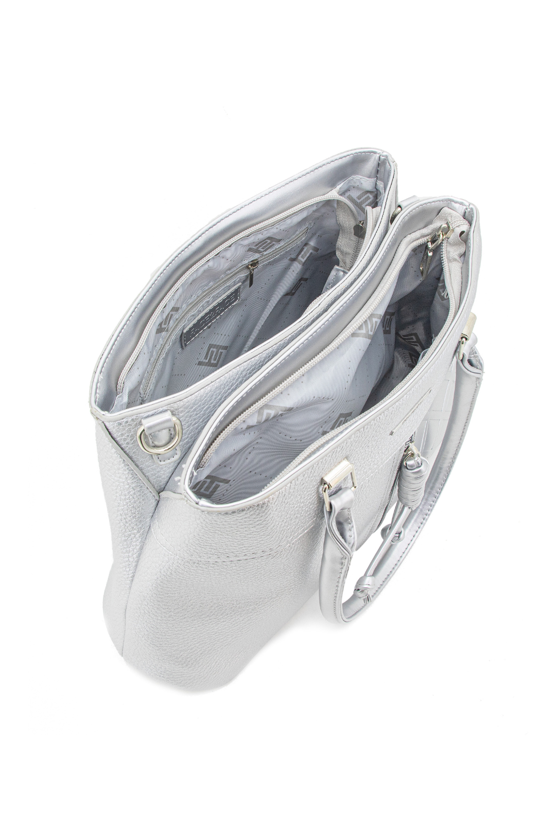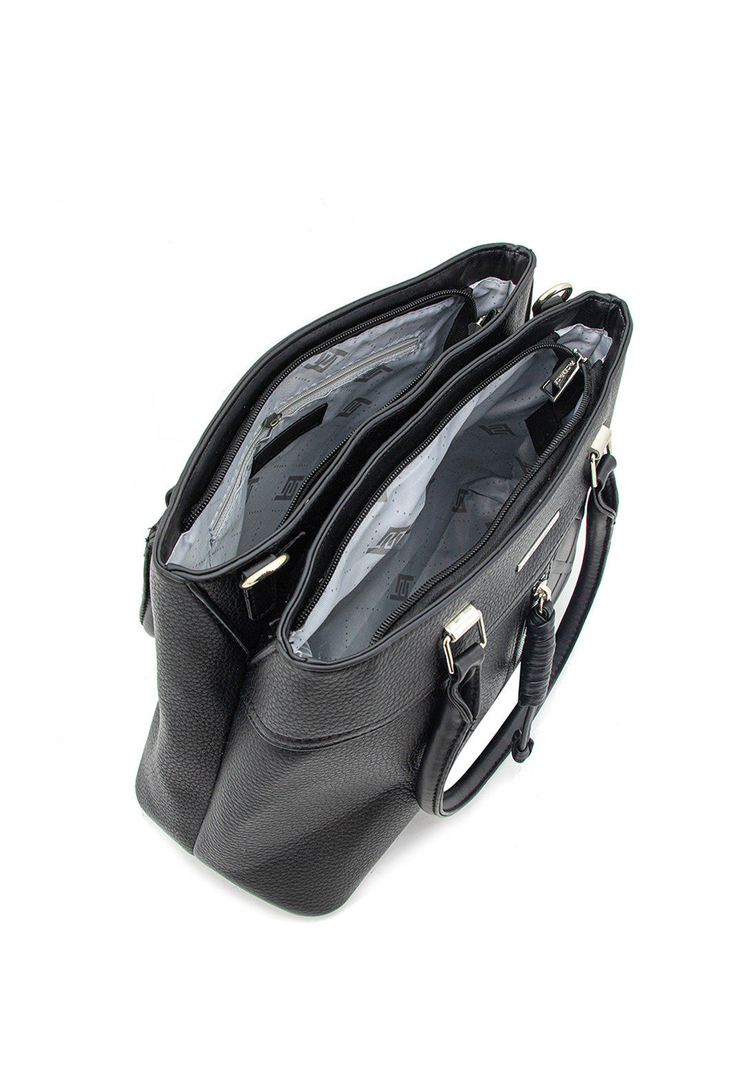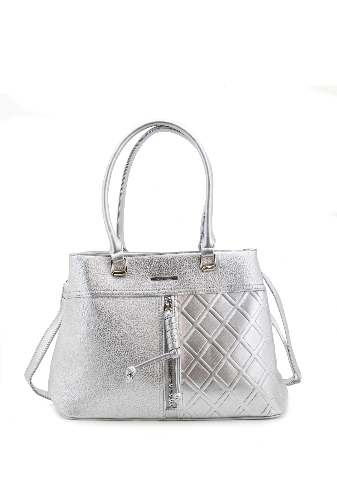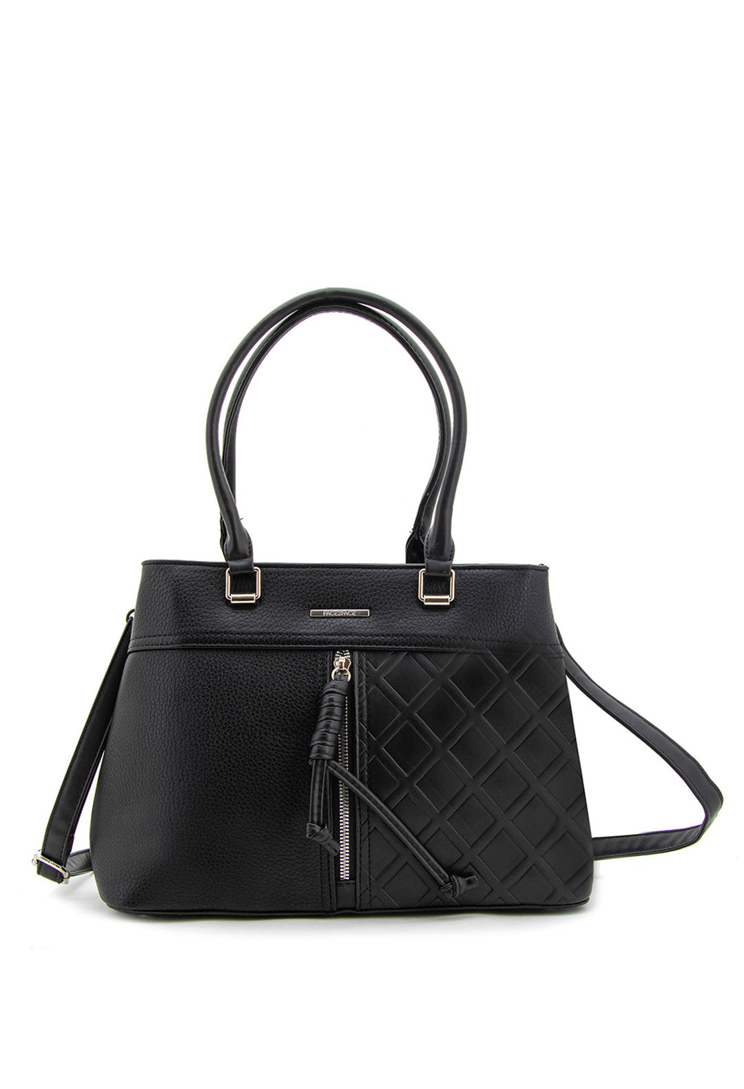 bolso de mano con cierre vertical y textura delantera en rombos, bolsillo trasero funcional con cierre, elaborado en sintético con forro intenro en tela y herrajes metálicos, garantía de 2 meses directamente con el vendedor en cierres, herrajes y costuras