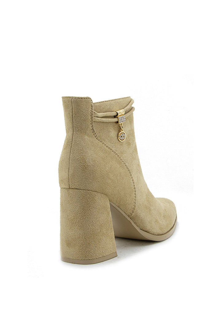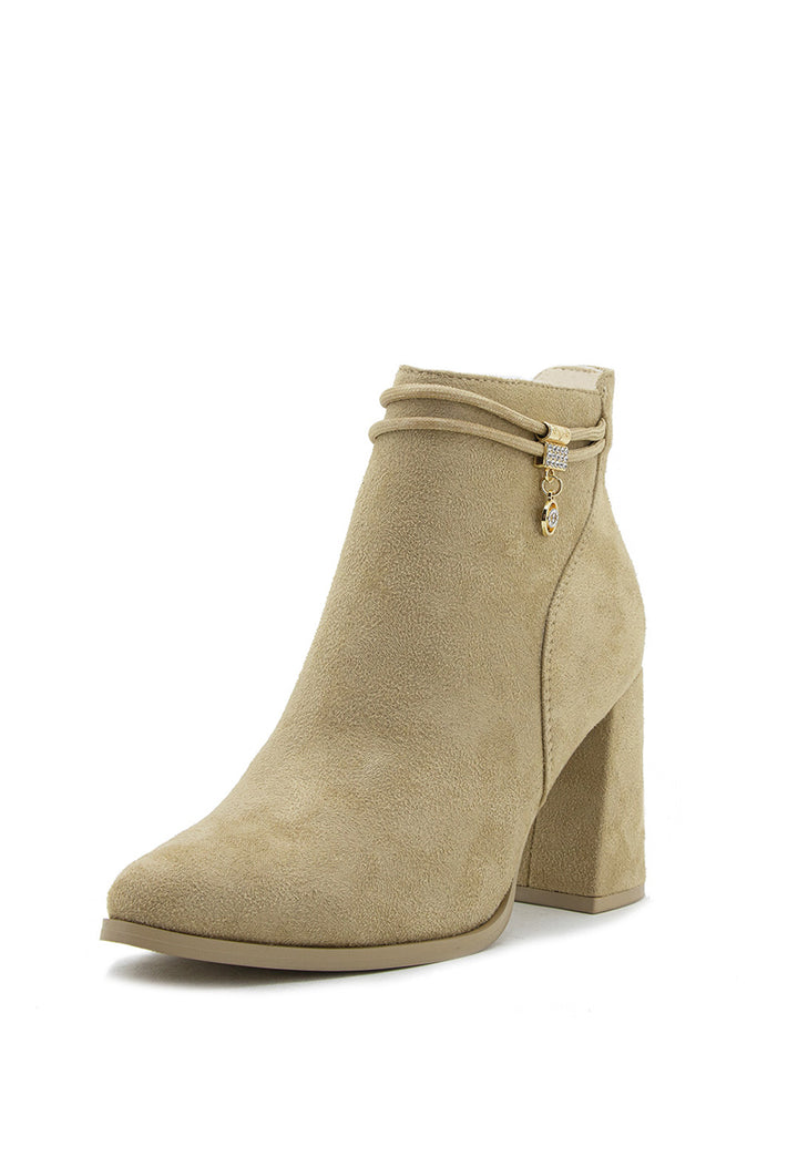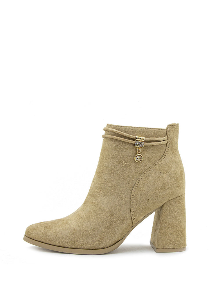Este elegante botín de caña baja es el complemento perfecto para cualquier look, combinando estilo y comodidad. Con un accesorio distintivo en el tobillo, aporta un toque moderno y sofisticado. Su diseño versátil lo hace ideal para acompañarte desde la oficina hasta una salida casual. Perfecto para quienes buscan calidad y detalles que destacan.