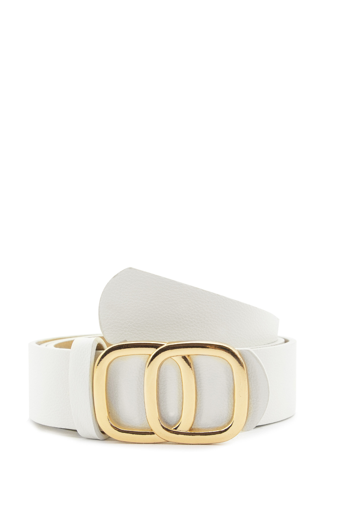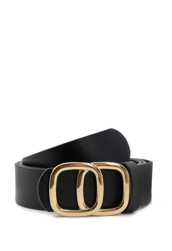 Este cinturón con hebilla de dos cuadros entrelazados aporta un toque elegante y moderno a cualquier atuendo. Su diseño sofisticado y detallado realza la cintura con estilo, ofreciendo versatilidad para combinar tanto en looks casuales como formales. Perfecto para destacar con un accesorio que equilibra funcionalidad y diseño exclusivo.