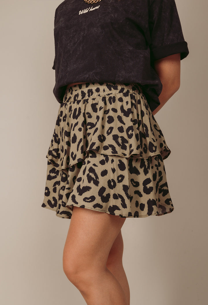 Dale un toque femenino a tu look con esta falda de boleros en estampado animal print. Su diseño con volantes añade movimiento y frescura, mientras el print aporta actitud y estilo. Perfecta para combinar con todo.
