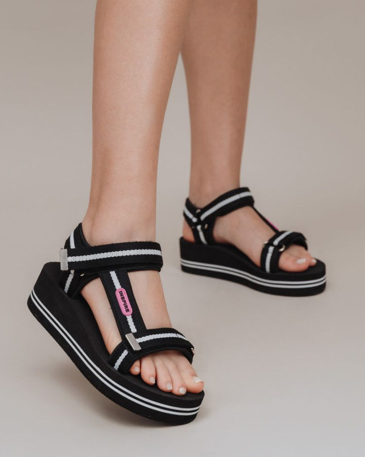 Sandalia Deportiva en Plataforma con Correas Textiles y Punteras Metálicas