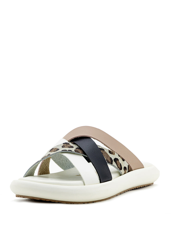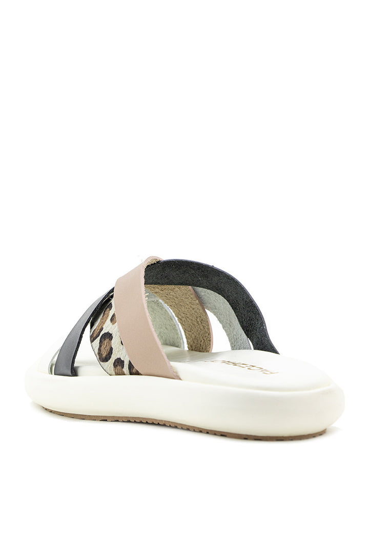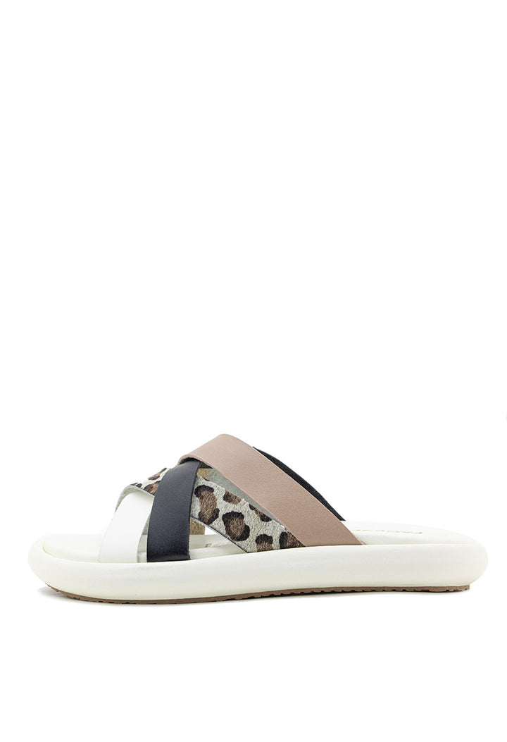 Dale un toque de sofisticación y estilo salvaje a tu look con estas sandalias cruzadas en cuero de alta calidad. Su diseño con contrastes en animal print añade un aire audaz, mientras que el acabado destalonado proporciona comodidad y frescura. Perfectas para combinar con tus outfits casuales o darle un giro chic a tu estilo diario. ¡Atrévete a destacar!
