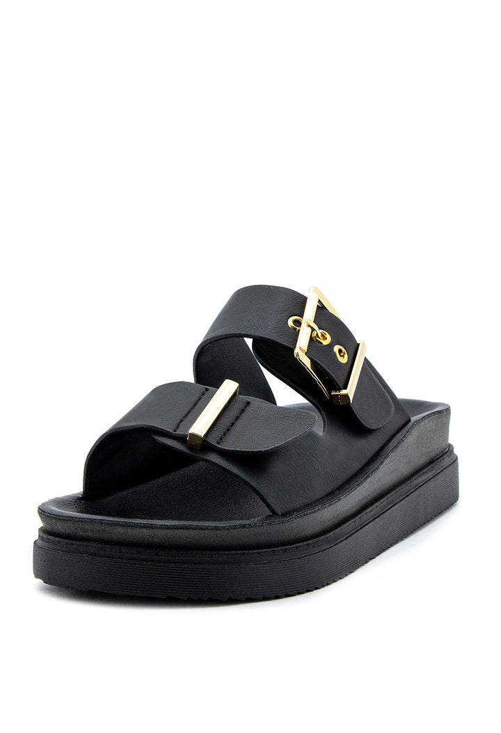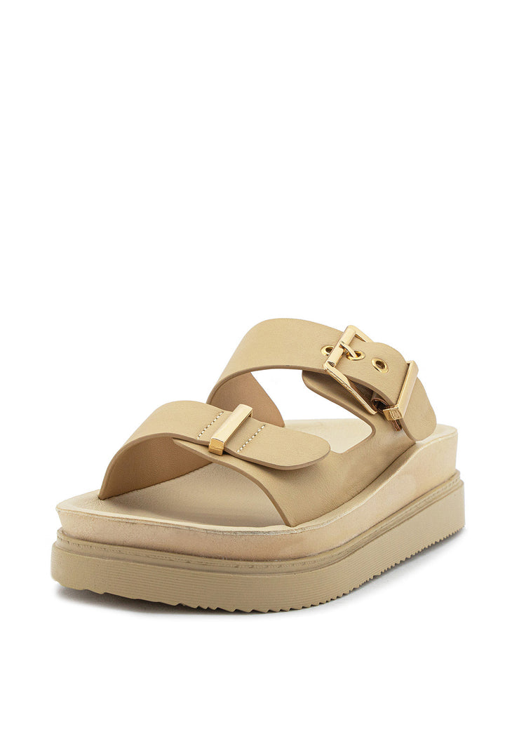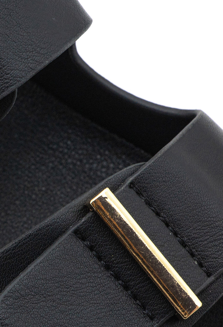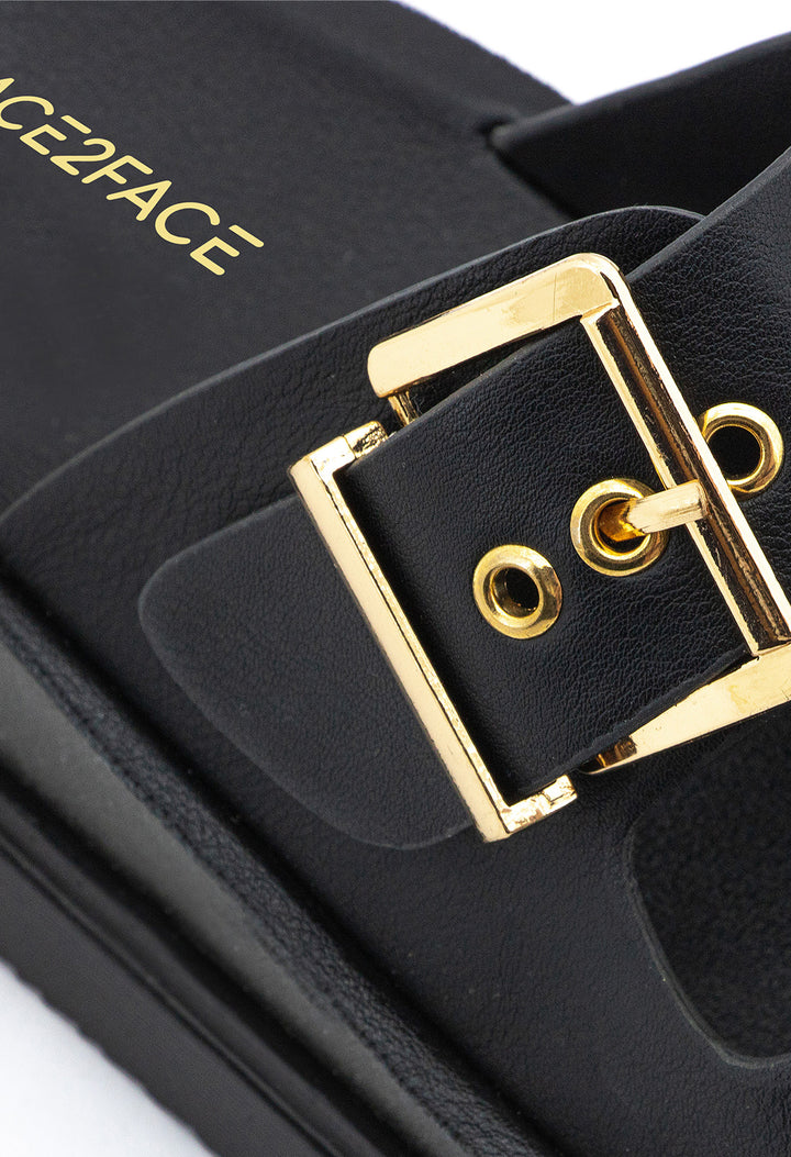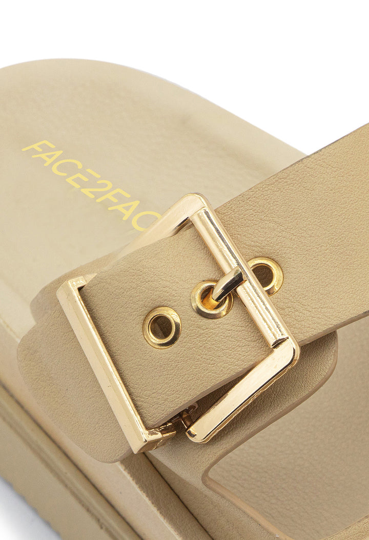 Sandalia plana que combina comodidad y elegancia con un diseño minimalista. Presenta una correa ajustable adornada con un accesorio metálico que añade un toque de sofisticación a tu look. Ideal para transiciones entre estaciones, esta pieza versátil se adapta tanto a outfits casuales como a conjuntos más refinados. La suela plana proporciona estabilidad y confort durante todo el día, mientras que el detalle metálico eleva cualquier atuendo con un acabado contemporáneo y chic.