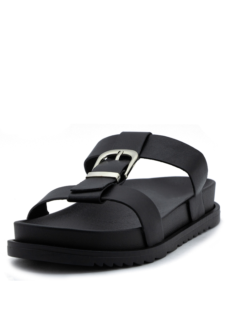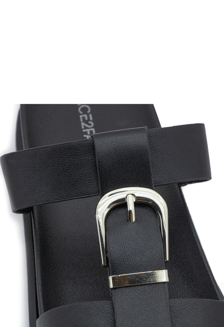 Sandalia Plana Suela Ancha Con Correas Y Hebilla Vertical
