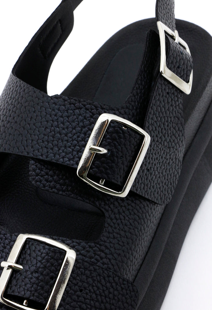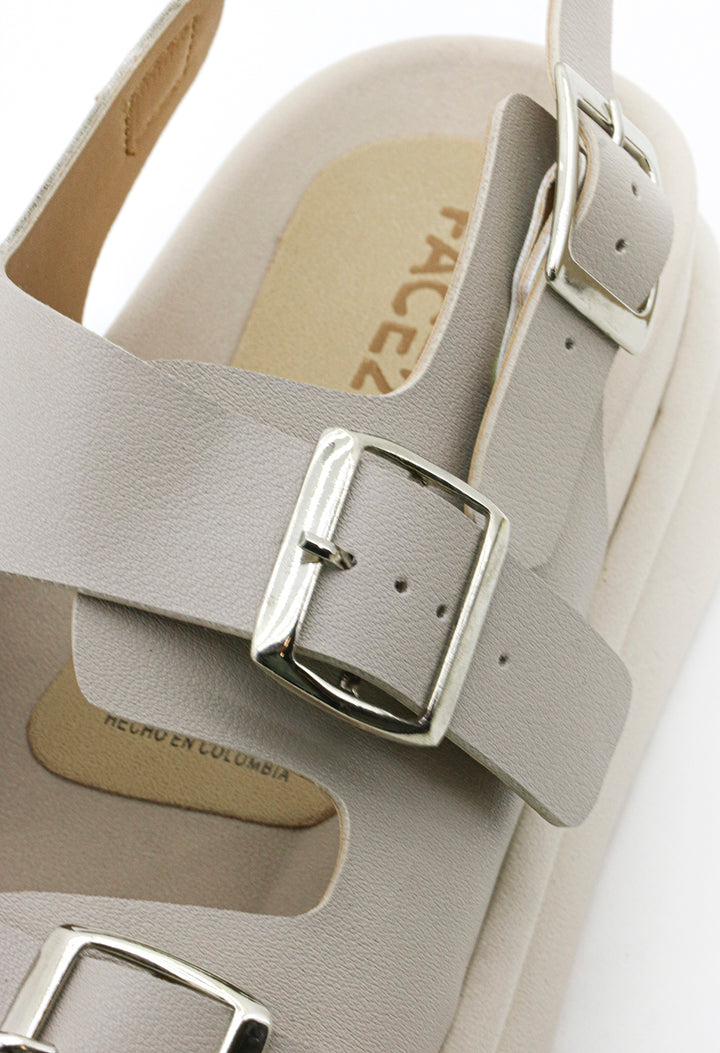 Sandalia Plana Suela Chunky PU Efecto Piel Con Hebillas