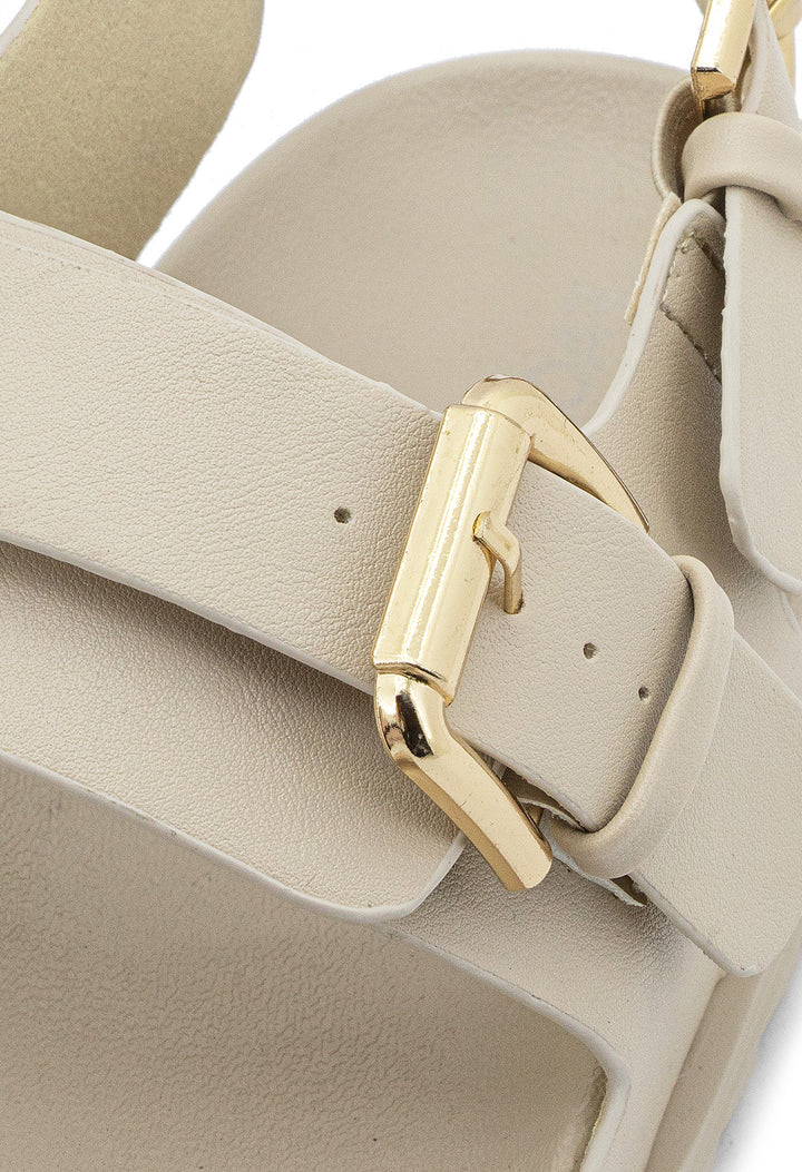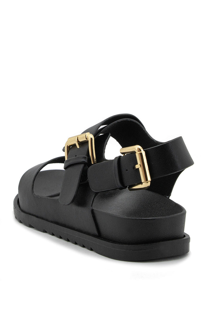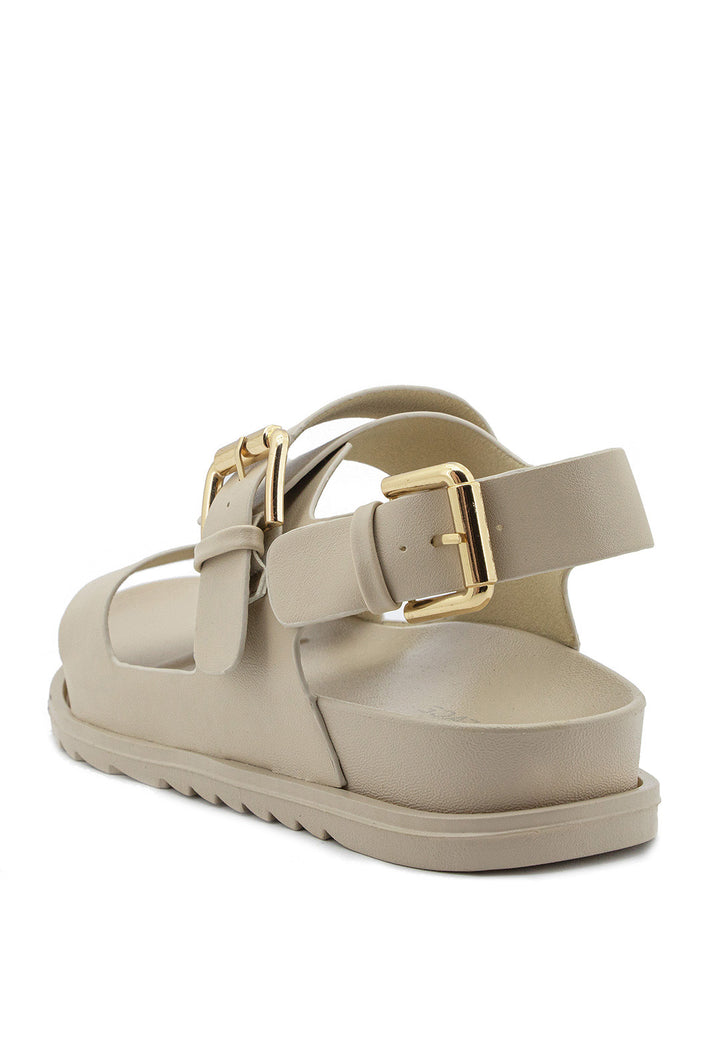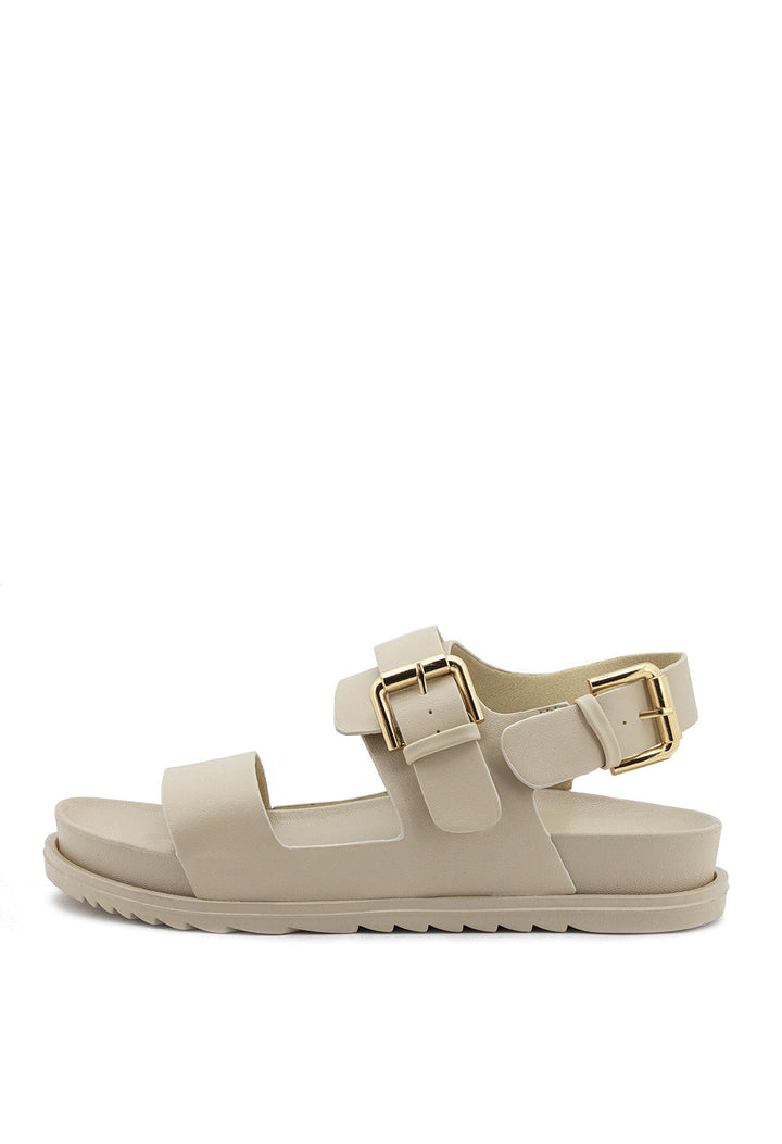 Sandalia de diseño minimalista con suela gruesa que proporciona comodidad y estabilidad en cada paso. Sus correas ajustables se adaptan perfectamente al pie, ofreciendo un calce seguro sin sacrificar el estilo. Ideal para looks casuales y versátiles, esta pieza combina funcionalidad con elegancia contemporánea. Perfecta para el día a día, ya sea en paseos urbanos o encuentros informales. Una opción sofisticada que trasciende las tendencias.
