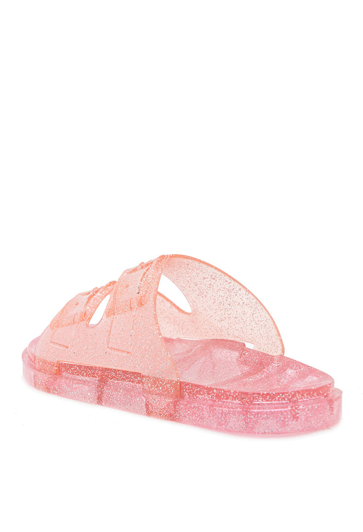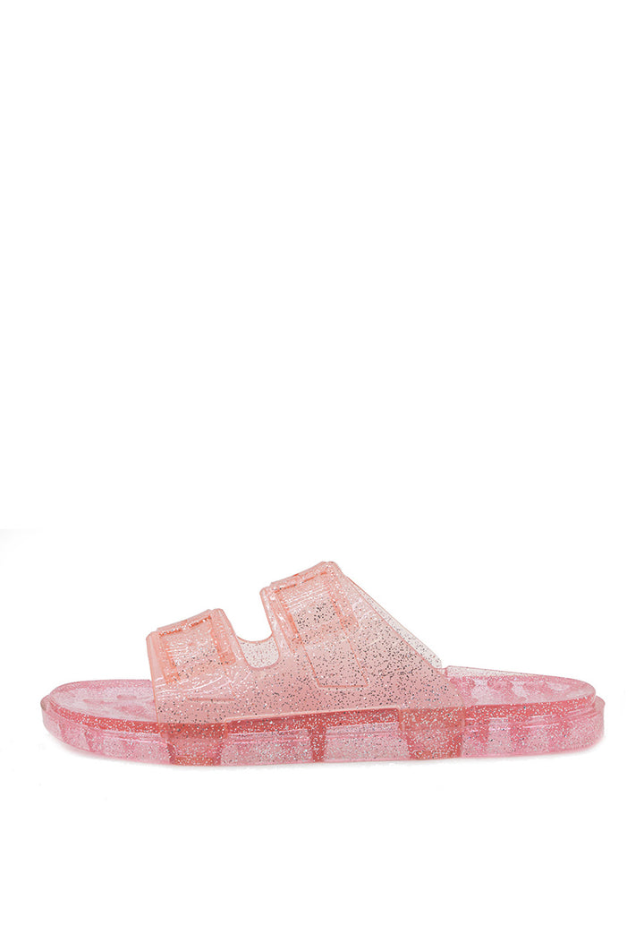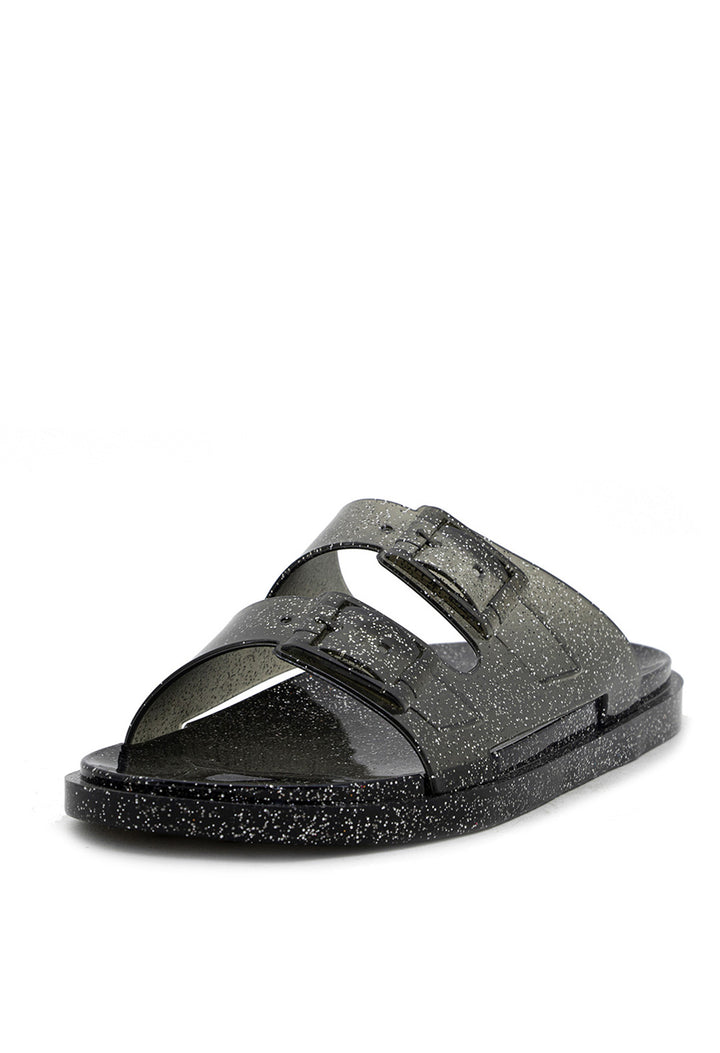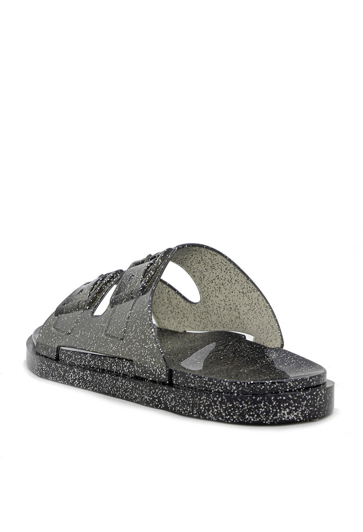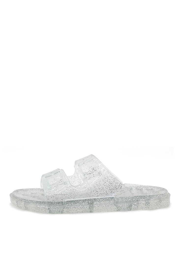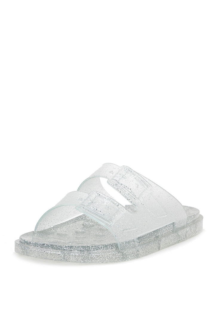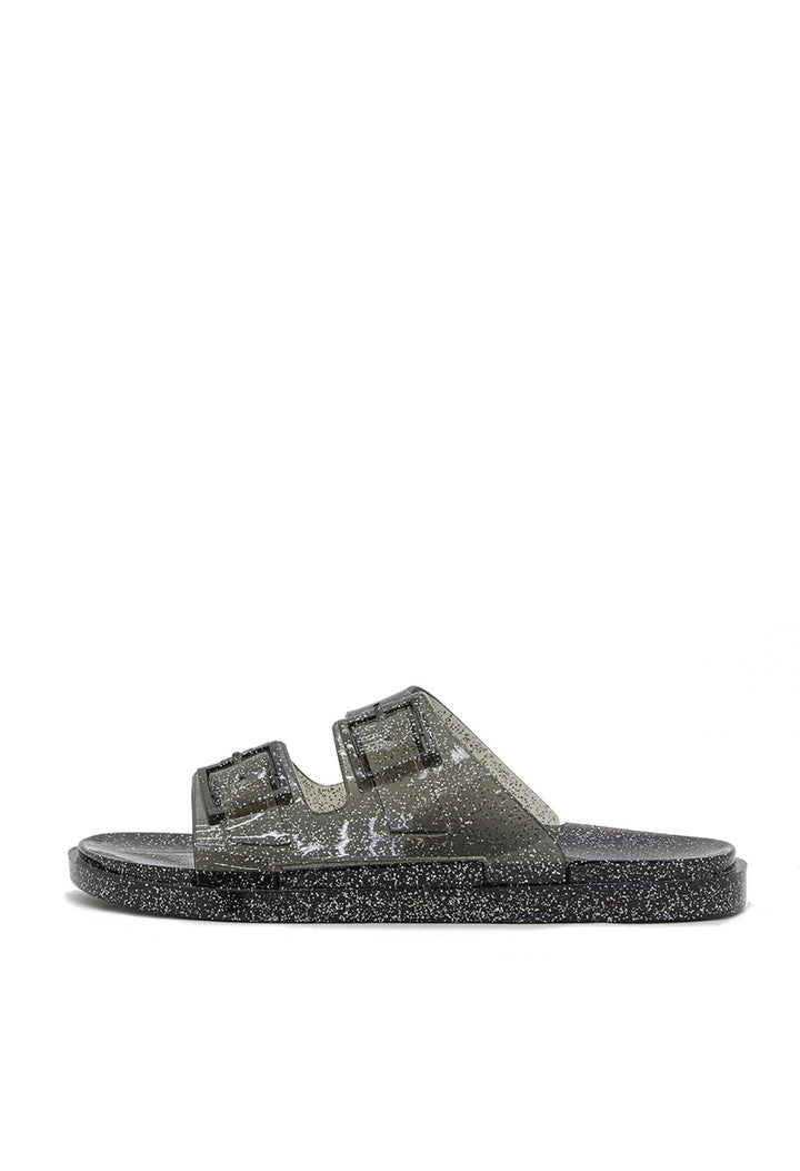 Sandalia Plana Transparente con Hebillas y Efecto Mirella