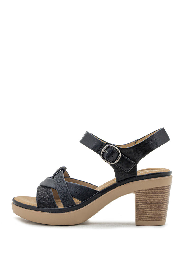 Sandalias de Tacón Grueso Forrado con Correas Cruzadas en el Empeine