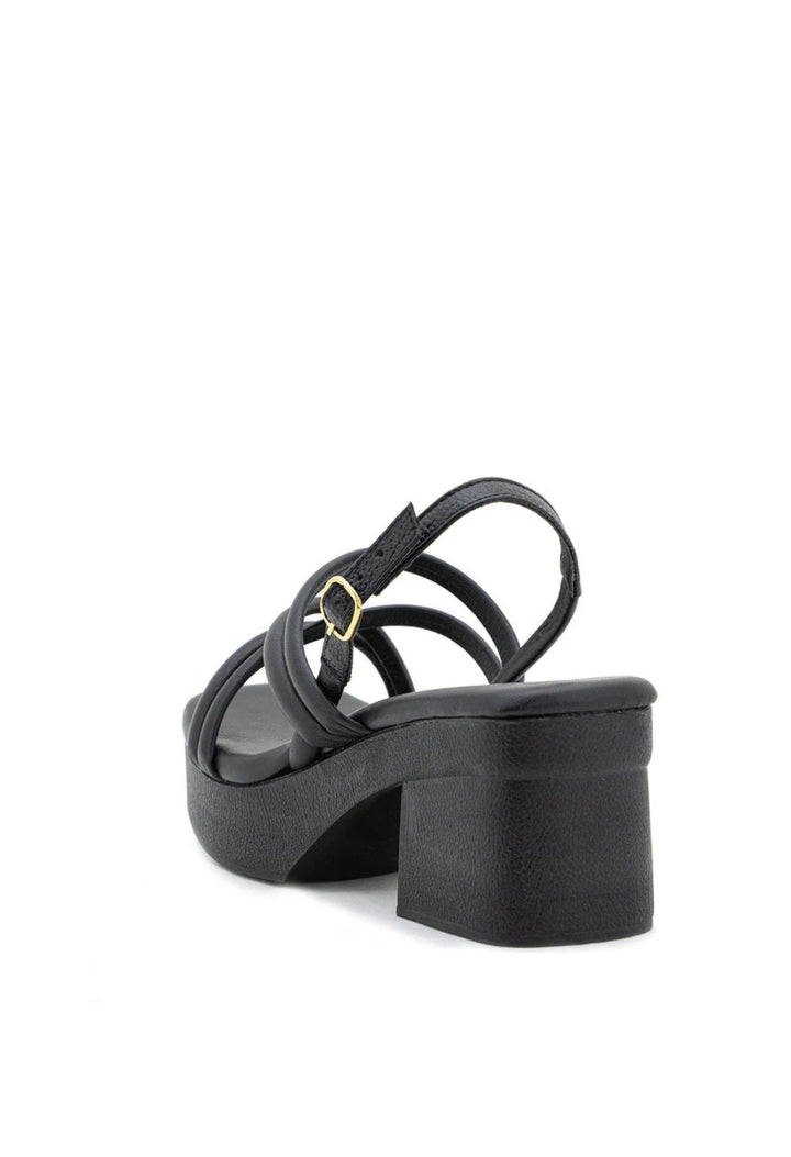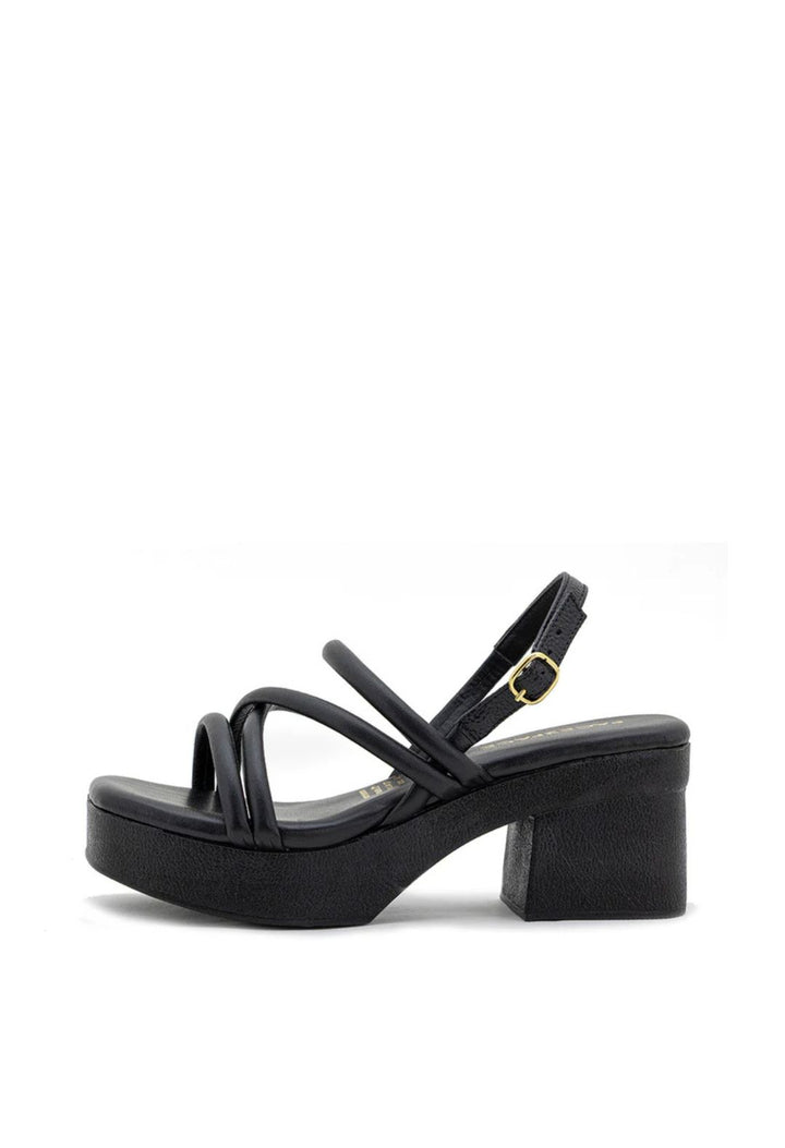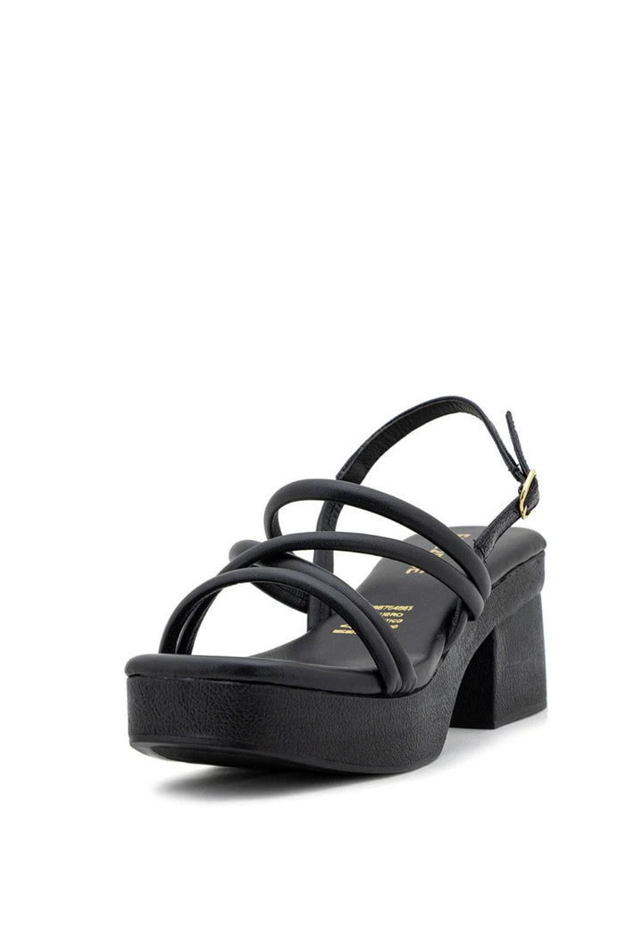 Tacón en Cuero de Suela Gruesa con Tiras Tubulares