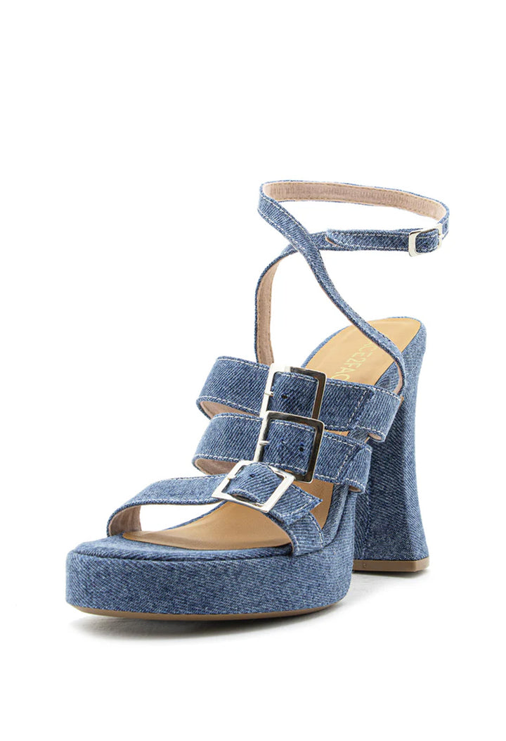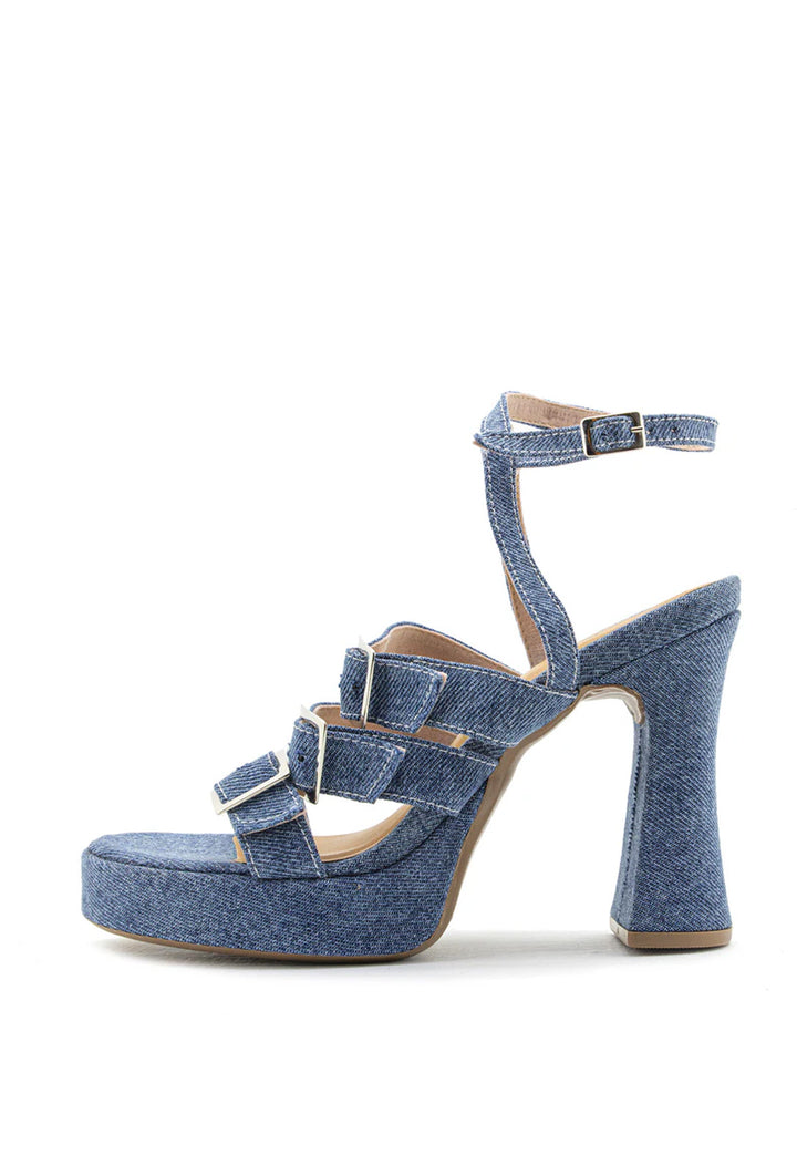 Tacón en Denim con 3 Hebillas y correas que ajustan muy bien el pie para mayor comodidad, este diseño se destaca por su sofisticación y sútileza