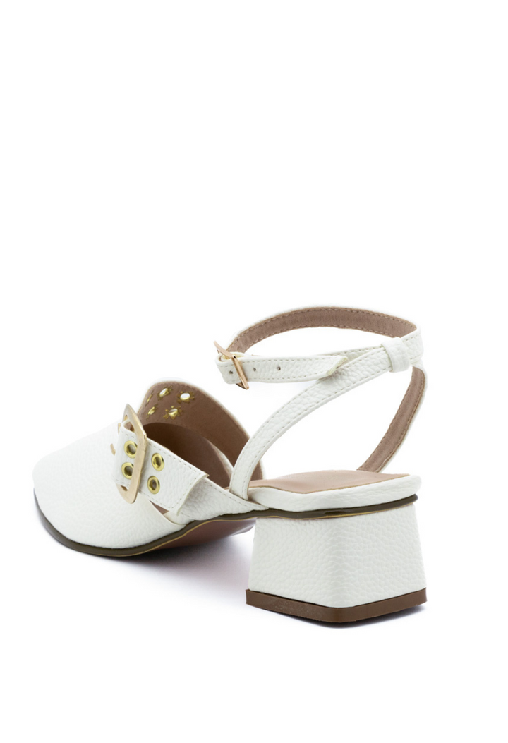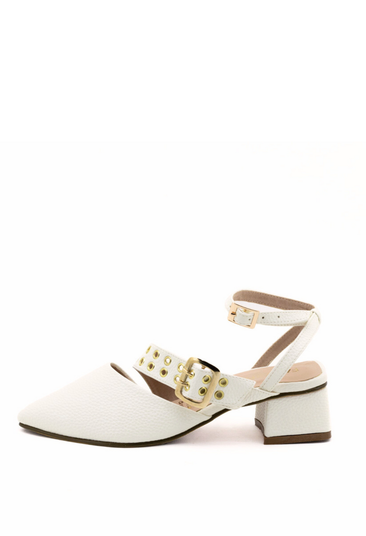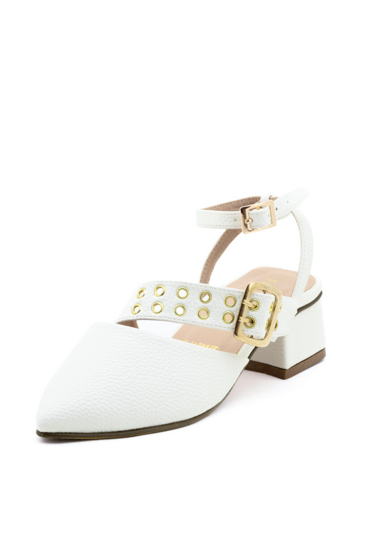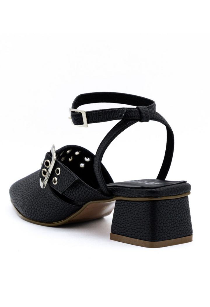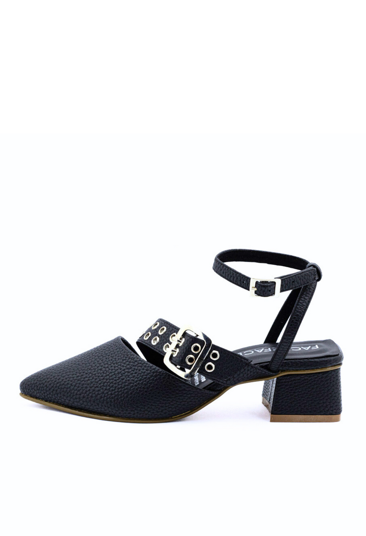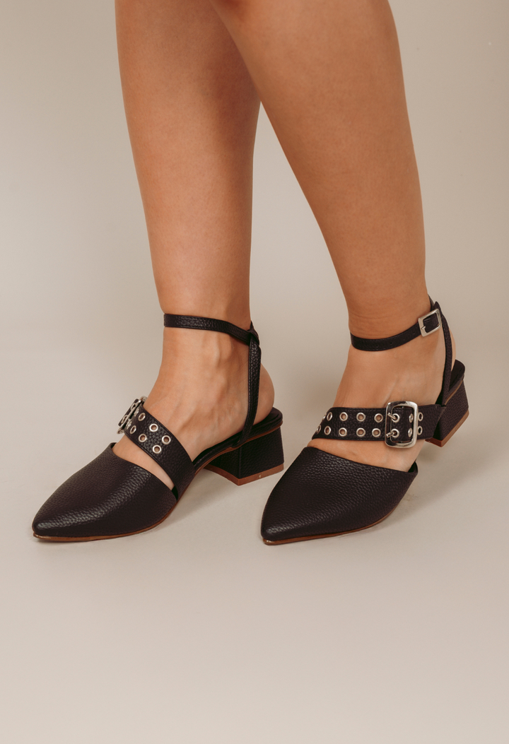 Tacón cerrado en punta con hebilla decorativa destalonado, diseñados para aportar un toque de elegancia a cualquier outfit. Su hebilla ajustable proporciona un ajuste perfecto, mientras que su diseño estilizado realza la figura. Ideales para ocasiones especiales o para elevar tu look diario con un toque sofisticado. ¡Sé el centro de todas las miradas con estos tacones únicos!