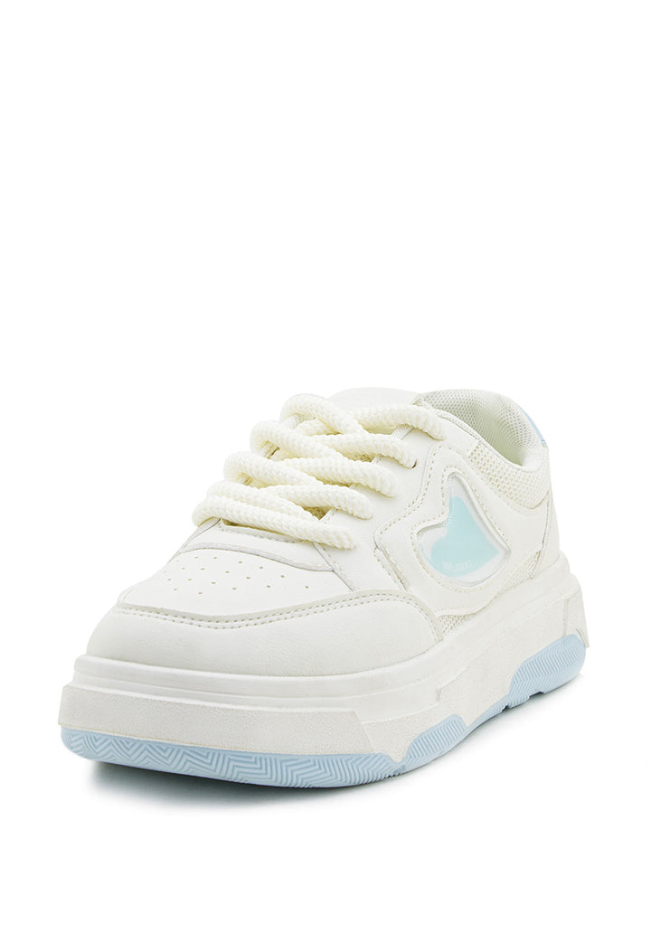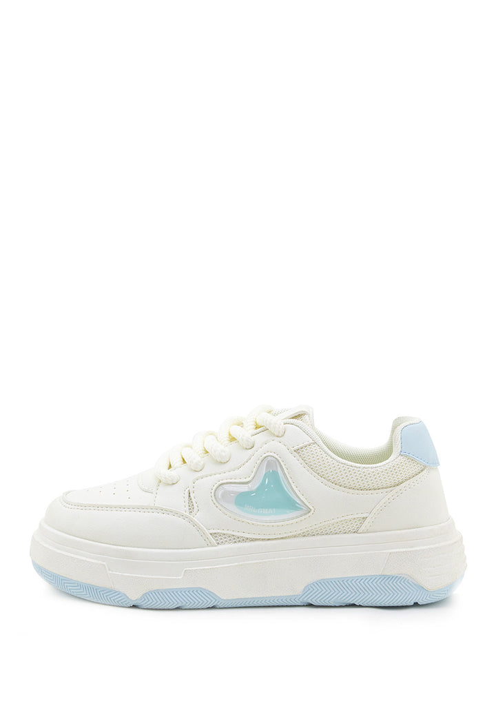 Tenis de suela baja confeccionados en malla, adornados con un diseño lateral de corazón en gel que aporta un toque elegante y distintivo.