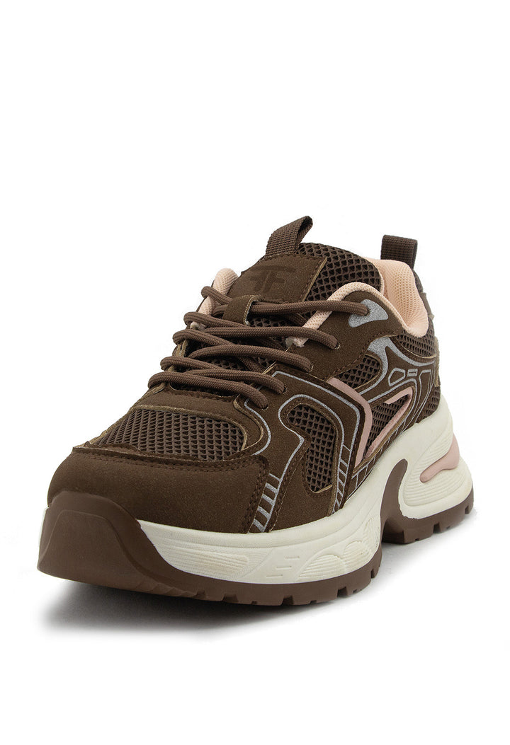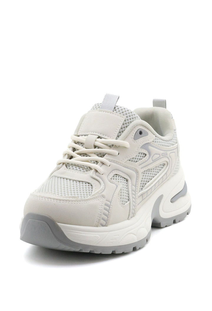 Tenis versátil que combina comodidad y estilo contemporáneo. Confeccionado en mesh transpirable y PU resistente, presenta detalles de estampados metalizados que añaden un toque de elegancia a tu look cotidiano. La estructura ligera favorece la movilidad, mientras que los acabados brillantes generan contraste visual sofisticado. Ideal para quienes buscan un calzado que transita sin esfuerzo entre lo casual y lo refinado.